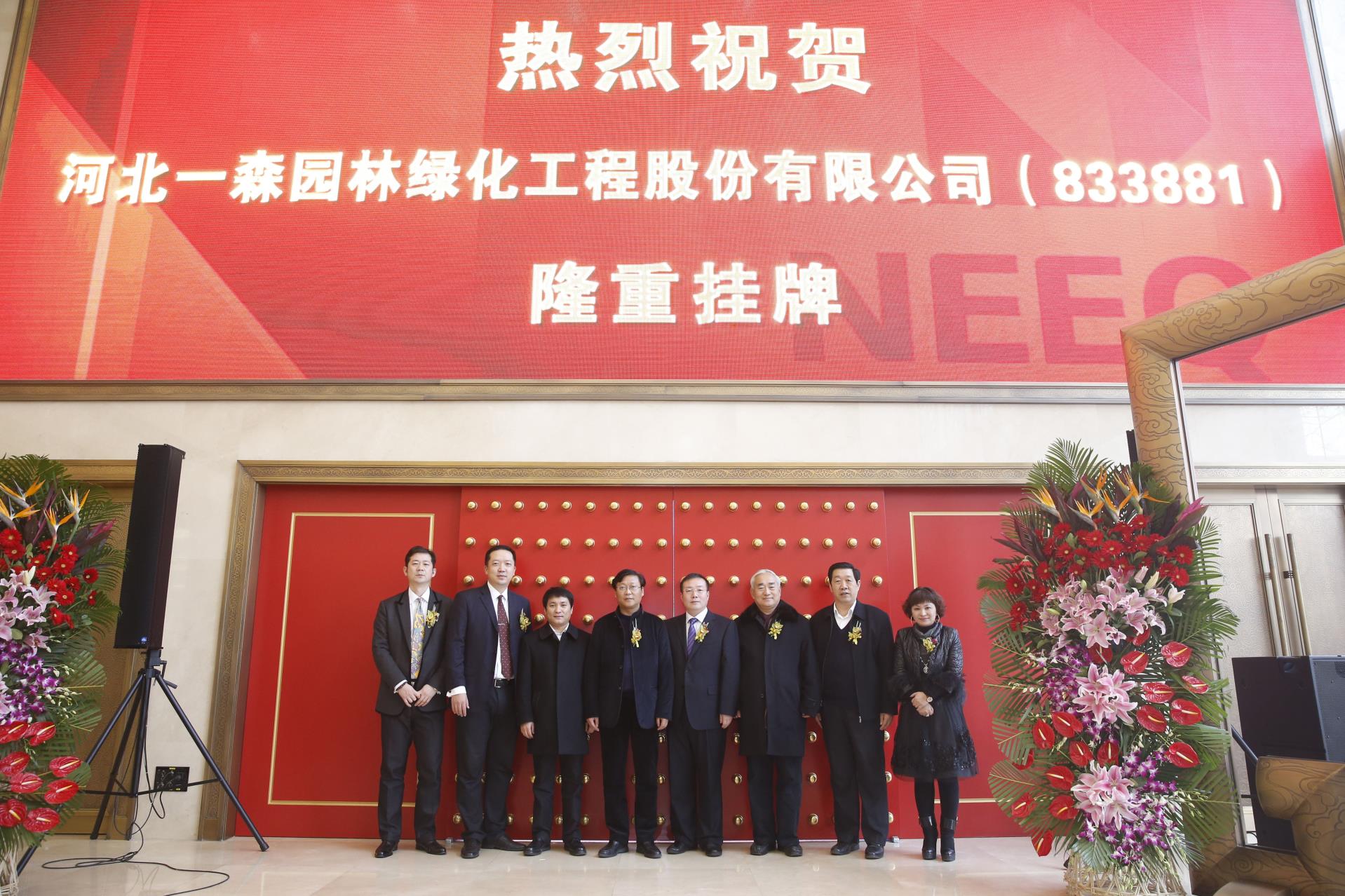 2015年12月21日 河北一森園林綠化工程股份有限公司在全國中小企業(yè)股份轉(zhuǎn)讓系統(tǒng)舉行隆重掛牌上市儀式,證券簡稱:一森園林,證券代碼:833881.一森園林正式登陸新三板,地方政府領(lǐng)導(dǎo)、各大企業(yè)、投資機構(gòu)以及國內(nèi)各大新聞媒體齊聚一堂,參與了此次隆重的掛牌儀式。
